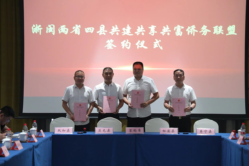 成立浙闽边界共建共享共富侨务联盟。召开浙闽两省毗邻四县侨务工作联席会议,与福建省松溪、政和、寿宁等三县侨联共同签署《浙闽两省毗邻四县缔结“共建共享共富侨务联盟”协议书》,积极打造具有浙闽两省侨务鲜明辨识度的跨区域合作品牌。