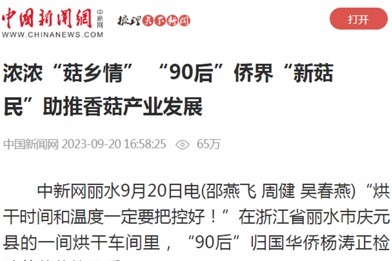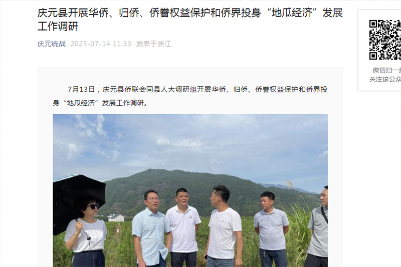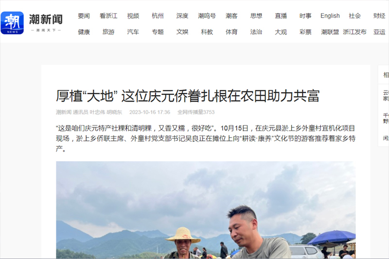 讲好侨界代表故事。深入挖掘侨界代表典型,走进基层侨联主席吴良、“90后侨界新菇农”杨涛等侨界代表人物,讲好侨界代表以己之能助力家乡产业发展的故事,受到新华网、中新网、潮新闻等媒体争相报道,进一步打响“侨助共富”品牌。